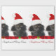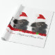 BLACK CHRISTMAS CAT,SANTA CLAUS HAT AND RED RIBBON WRAPPING PAPER