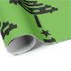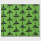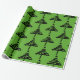 A simple stylish pattern of black Christmas trees on a green background. The design is a simple digital drawing of a Christmas tree with a star on the top.
