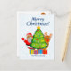Black Christmas tree with Santa Claus & Rudolph, Holiday Postcard