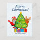 Fun Christmas tree with a black Santa Claus and Rudolph, peeking out from behind it, after delivering Christmas presents. The text says "Merry Christmas + ADD FAMILY NAME". Click the "Customise it" button to add YOUR OWN TEXT, make your own changes and create your own original and unique gift. CONTACT US IF YOU NEED THIS DESIGN ON A SPECIFIC ZAZZLE PRODUCT. RoundyWorld©