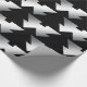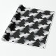 An elegant Christmas wrapping paper featuring a contemporary Xmas pattern of black Christmas trees on a silver background.