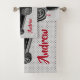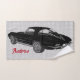 Black Classic Corvette Design Bath Towel Set with customisable text and background colour.