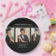 Modern black graduation custom paper plates for college/university graduates personalised with 3 favourite photos.