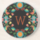 Black & Colourful Cute Colourful Retro Floral Wrea Coaster