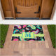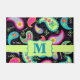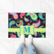 Welcome guests to your home with this colourful door rug or mat personalised with your monogram initial. This design provides contemporary modern design and can be customised with your monogram initial. The bold colours of this trendy paisley design pops on a black background with a lime green strip and emblem for personalisation. Bright, fresh, modern paisleys make a beautiful artistic design of timeless paisleys. This Mod Paisley collection, designed by Phyllis Dobbs, features the colours of teal, turquoise, lime green, wine, yellow, fuchsia and orange to create a fun and whimsey take on the traditional and popular paisley motif. This paisley design is original art. Fully customisable for personalisation.