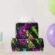 Hip, fresh and awesome paint splatter birthday or other all-occasion gift wrap in vibrant, bright neon colours of pink, green, blue, and yellow against a high-contrast black background. Great for a retro 80s eighties theme party, or a cute sweet sixteen birthday gift for the artist teen girl or guy. Abstract expressionism artwork in a super bright colour scheme.