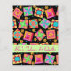 You will get your customer's attention by sending this black quilt art postcard to announce your quilt business or store sale, grand opening, open house, classes or other information about your quilt business. A lime green bar on the front can be used to personalise with the name of your store or business or other venue. Original quilt art combines favourite quilt blocks plus unique blocks in vibrant and dynamic colours of yellow, orange, pink, lime green, turquoise and red on a black background. The quilt art is by quilt and fabric designer Phyllis Dobbs and is available in fabrics from Quilting Treasures. More products with this quilt art are available in Phyllis' main Zazzle store PhyllisDobbs. Matching stamps available that you can customise with your business name.