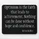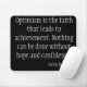 This black and white motivational computer mousepad features a quote by Helen Keller that reads, "Optimism is the faith that leads to achievement. Nothing can be done without hope and confidence."