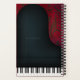 This notebooks features a whimsical illustration of a black concert grand piano on a dark red background. Your can customise the cover with the name, title, or school subject of your choice. This medium-sized notebook is perfect for writing music lesson assignments, weekly practice record, and taking notes during rehearsal and masterclass.