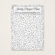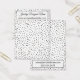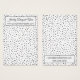 //Please note that the markers for your hole punches were rendered here in red to enable them to better show up over the background image. This layer can be removed or the colour change to any you prefer. // This simple, fun card features template space holders for adding your business contact details to both the front and back. I've used a pretty script font for your designer or business name, and a clean, sans-serif typeface for all other details. The background of the card was covered in a graphic depicting black confetti, allowing the editable white background colour to show through. A black-bordered rectangle overlays this graphic, setting off your text elements beautifully. Please don't hesitate to reach out if you need any customising help.