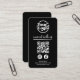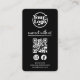"Black Connect With Us QR Code Logo Social Media Business Card" features a clean black and white design layout, providing ample space for your logo and a prominently displayed QR code and black and white social media icons, ensuring that clients and contacts can easily connect with you digitally: access your website, portfolio, social media account, or contact details with a quick scan. Customisable by adding your logo, QR code link, social media icons, and contact details. Ideal for networking events, meetings, or daily business interactions, this card combines professionalism and convenience in a simple, stylish package.