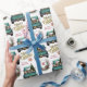 A teal blue pickup truck carries a decorated Holiday tree and gift packages on this cute gift wrapping paper. A beautiful black and tan Coonhound dog wears a Santa Claus hat and looks out from the tailgate. A rustic wooden sign on the back bumper says "Christmas Cheer". Your monogram is enclosed within a pretty pine cone and red berry wreath, and stylised gold text says "Merry Christmas". You may also customise the "from the (Name) section.