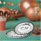 this design features a black and white polka dot pattern surrounded by a black ribbon frame. You can personalise with initials, names and a year.
