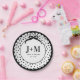 Black Coquette Bow Anniversary Initials Paper Plate