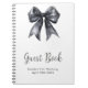 Pretty birthday party guest book featuring a black coquette bow ribbon. The words can be changed to suit your own details or requirements
