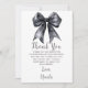 Pretty birthday party thank you card featuring a black coquette bow ribbon. The words can be changed to suit your own details or requirements
