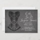 Ooh La La Lingerie Bridal Shower Invitation featuring a lacy black corset set on a popular chalkboard background with a coordinating back