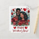 This postcard features a happy black couple surrounded by red hearts and framed by red roses.