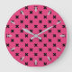 Black cross stitches on fuchsia large clock