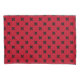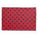 Black cross stitches on red pillowcase