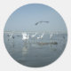 Black Crow and White Cranes: A Contrast in Nature Classic Round Sticker