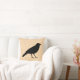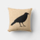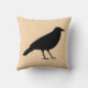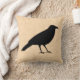 A black silhouette image of a crow bird, on a printed background that has a beige parchment pattern. The parchment look pattern is an image, a flat design, printed on the surface of the item.
