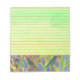 A colourful lined notepad for the autumn season featuring three crows perched in trees with fall leaves drawn in ink with watercolor on a chartreuse and lemon-lime watercolor wash background. Great for list, reminders and a nice thinking of you gift!