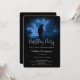 Birthday party invitation with an image of a black raven at night perched on a tree branch with runes above which says "black raven".