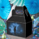 A tiny favour box with an image of a black raven at night perched on a tree branch with runes above which says "black raven".