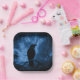 Paper plates with an image of a black raven at night perched on a tree branch with runes above which says "black raven".