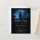 Birthday invitation with an image of a black raven at night perched on a tree branch with runes above which says "black raven".