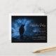 Birthday invitation with an image of a black raven at night perched on a tree branch with runes above which says "black raven".