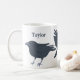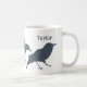 Add a name to this coffee mug to create the perfect personalised gift for bird lovers. Three realistic style black crow illustrations adorn this mug. The graphics wrap around the mug. The name appears on both sides of the cup.