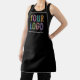 Personalise this all-over-print apron with your own company logo or picture and custom text. The text can be a name, business tagline, website address, social media handle, or other personalised text to express yourself. Available in black and other colours (all colours are customisable). Available in large, medium, and child size. No minimum order quantity and no setup fee.