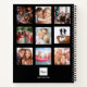 Make your own unique family photo collage as a gift or for yourself. Use four, 9 of your favorite photos of your family, friends, dream travel destination or pet! Personalize and add a name and a year. The name is written with a modern hand lettered style script. A modern black background, white text.