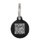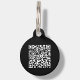 Customisable black QR code pet ID tag. This pet tag features a scannable QR code that enables anyone with a smartphone to access important information about your pet. You can easily generate a brand new QR code on the design via the "personalise this template " feature. Just add the URL of your contact webpage / social media page or you can even add your email address to the area provided.