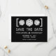 This D20 Dice Gamer Save the Date Announcement in black and white is perfect for the nerdy couple who fell in love over a shared interest in role playing games and would like to announce their wedding displaying this part of their personalities. This offbeat design features a simple and minimalist trio of twenty-sided die. Easy to customise, simply add your wedding details in the text fields provided. Click "Customise It" to find more personalisation options.