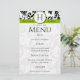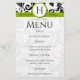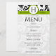 Green with Black and white Victorian Floral Damask Monogram Wedding Menu