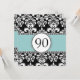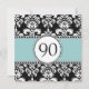 Black and White Damask Customisable Elegant Birthday Invitations. Shown here with 90th birthday text and blue accent colour. Customise with your information using the prompts and add more text by selecting the "customise it" option and using the edit menus. Luxurious damask pattern and design for your special birthday invitations