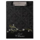 Clipboard - Black Damask and Black Swirls and floral design. Great for a company, corporation, workshop, office, home or school. Add your name. ⭐This Product is 100% Customisable. Graphics and/or text can be added, deleted, moved, resized, changed around, rotated, etc... 99% of my designs in my store are done in "LAYERS". This makes it easy for you to resize and move the graphics and text around so that it will fit each product perfectly. ✔(just click on the "EDIT DESIGN" area to do some of your changes) NOTE:***📌 (Please be sure to resize or move graphics if needed before ordering it will print exactly like you see it on the screen - keep the text in the green dashed area) You can also "TRANSFER DESIGN" on other Zazzle products and adjust the design to fit most of Zazzle items. (button is down on the right side of the page) Some of the text graphics have ready to fill in the box(es) or you can Click on the "CUSTOMIZE" button to add, move, delete, resize, background colour or change any of the font or graphics. The design is made with high resolution vector and/or digital graphics for a professional print. 📌NOTE: (THIS IS A PRINT. All Zazzle product designs are "prints" unless otherwise stated under "About This Product" area) The design will be printed EXACTLY like you see it on the screen and on the product...so please make sure when you do your changes on the resizing of any of the graphics or text that it fits in the areas correctly and that your spelling and wording is how you like it to be in size, colour and font. If you have any questions about the "ART DESIGN ONLY" or need help in that area, please contact me at ✉ siggyscott@comcast.net or visit my store link: https://www.zazzle.com/store/designsbydonnasiggy (Copy and Paste) I'll be happy to help. OTHERWISE 📌 All other questions (Shipping, Refunds, the Printing was NOT Correct, the Product itself, etc...) Please Contact "Zazzle" or the Maker ⭐DIRECTLY⭐The DESIGNER cannot help you in these areas. They only do the ART DESIGN. Thank you for the support and stopping by my store - DesignsbyDonnaSiggy. © Donna Siegrist⭐⭐⭐ ZAZZLE promises 100% satisfaction. If you don't absolutely love it, Zazzle will take it back! ⭐⭐⭐ 1-888-8ZAZZLE (1-888-892-9953) Phone hours: Mon - Fri: 9AM - 5PM PT (12PM - 8PM ET)
