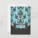 Black Damask Blue Wedding RSVP (Response) Cards---match the invitations & entire suite found below on this page. The front features a pool blue blue) & black chandelier damask print on the top half of the card's front, followed by a black pintuck print on the back for elegance. Change the RSVP wording on the back to whatever you want by clicking the orange customise button below the card demo above.