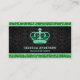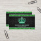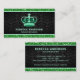 Black Damask Faux Green Glitter Royal Crown Business Card