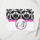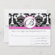 Black Damask Heart Swirl Bright Pink Trim RSVP Card