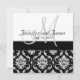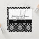 stylish Black and White Floral Damask Wedding Invitation with modern, simple monogram and names design on the front. On the back invitation text shows an example of text which allows each invitation to be personalised by handwriting the name of each guest in the space provided. Please do NOT choose the metallic paper stock, as it is more difficult to write on this glossy surface. Layout design by Elke Clarke© 2009. Graphics licensed for use. Need help or would like a different colour damask please contact luxuryweddinginvitations@gmail.com