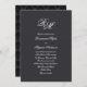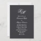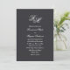 Elegant wedding invitation in black, dark grey, and white with a swirly script and a gothic damask pattern.