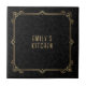 Black Damask Pattern, Art Deco Frame, Custom Text Ceramic Tile