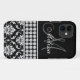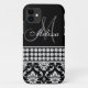 This monogrammed black and white damask iPhone 5 Case-Mate Case has a photo of this design embedded into the hard plastic cover. The design is made up of a black and white damask pattern, a print of three rows of white diamonds in a stripe and an area where you can add your name and monogram initial in gorgeous script fonts. This iPhone 5 case cover is the perfect way to accessorise your iPhone 5. Be stylish and girly all at the same time. Design by Elke Clarke©2012. Graphics licensed for use. You can "customise it" and chnge the background colour and font.