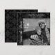 This 5.25x5.25 save the date wedding announcement has an elegant black and grey damask background. There is a place for you to add your photograph on the right. At the top, you can easily customise the names of the bride and groom along with the date of the upcoming nuptuals.