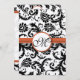 Black Damask Swirls on White Burnt Orange Trim Invitation