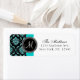 Black Damask Teal Glitter Printed Monogram Return Address Label